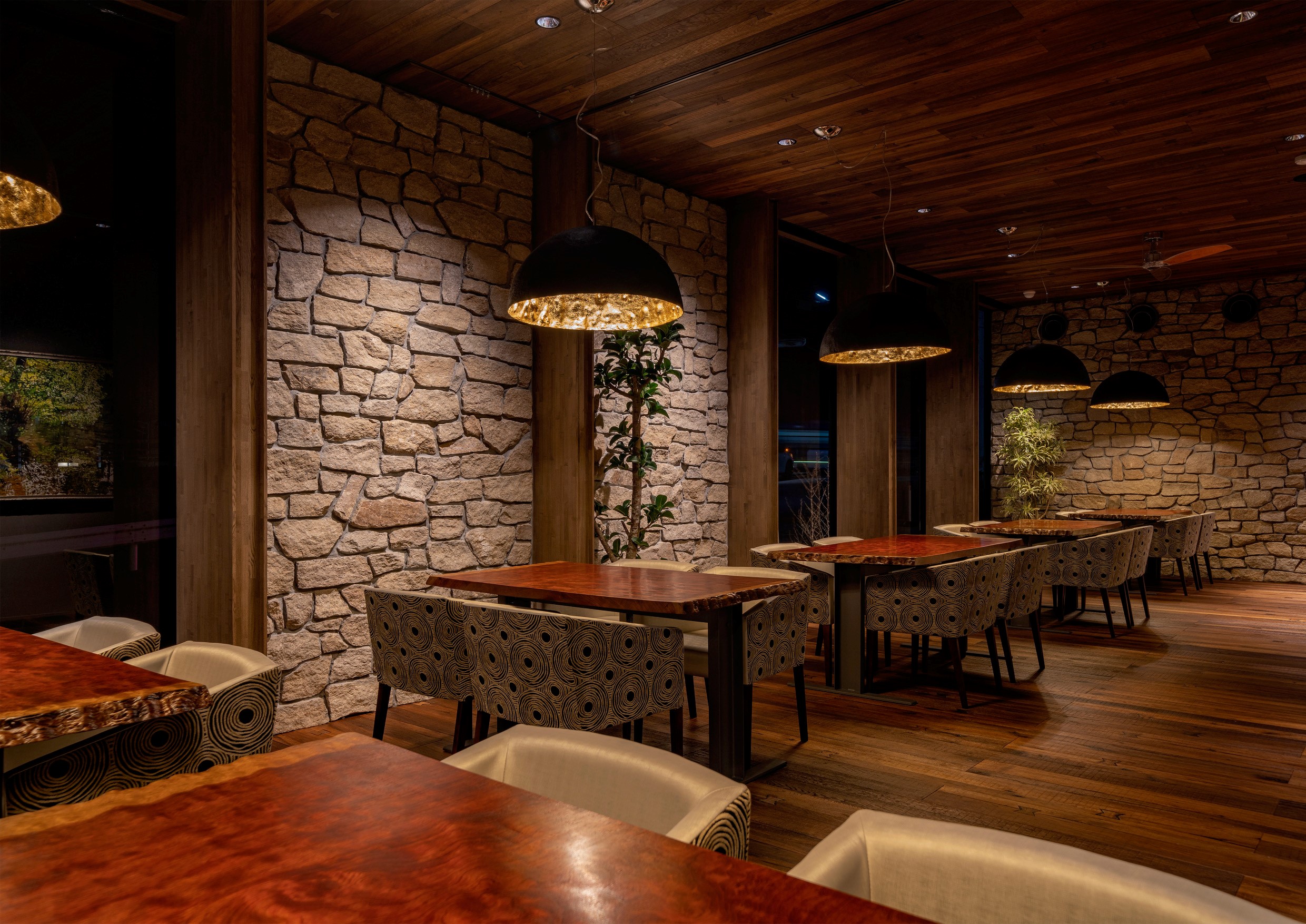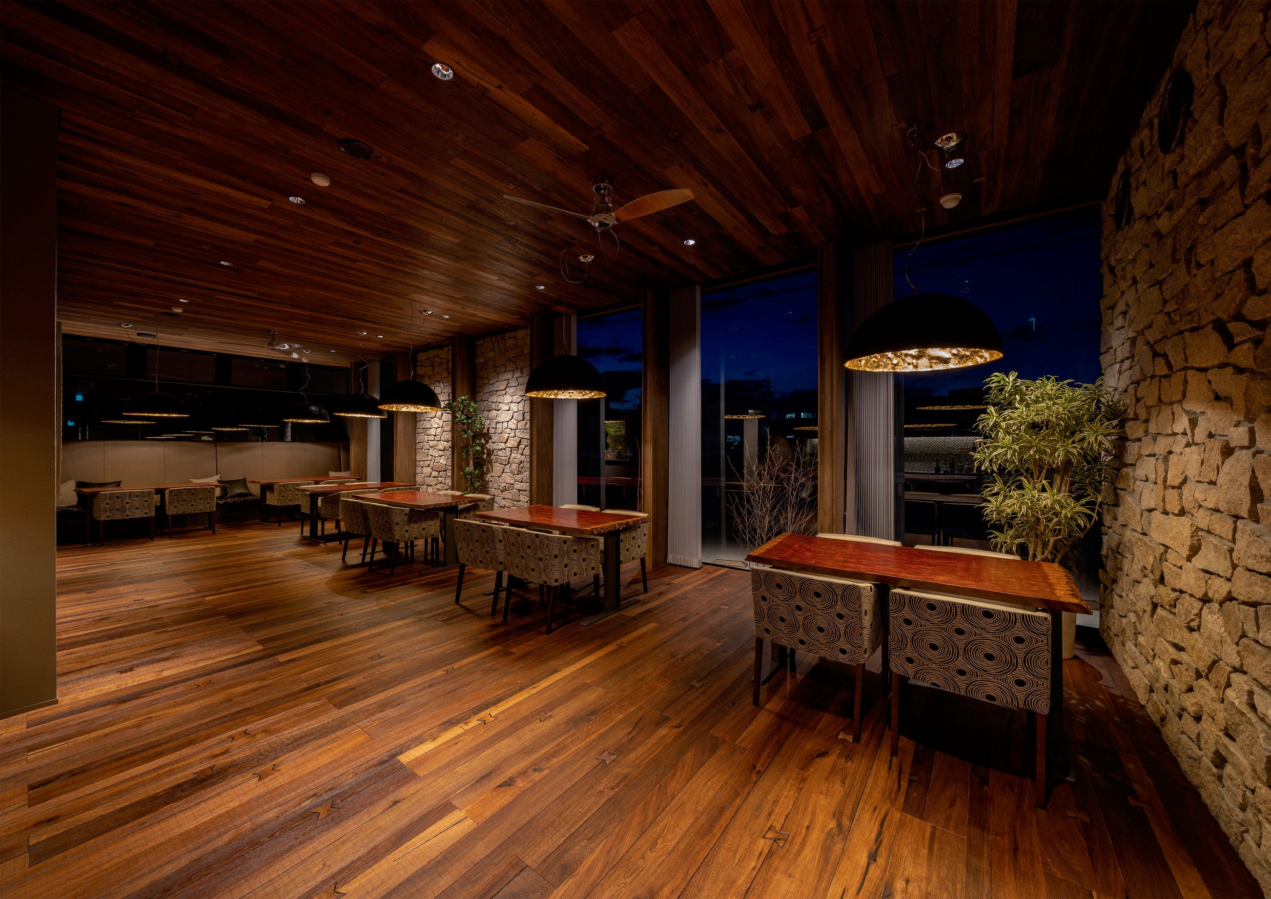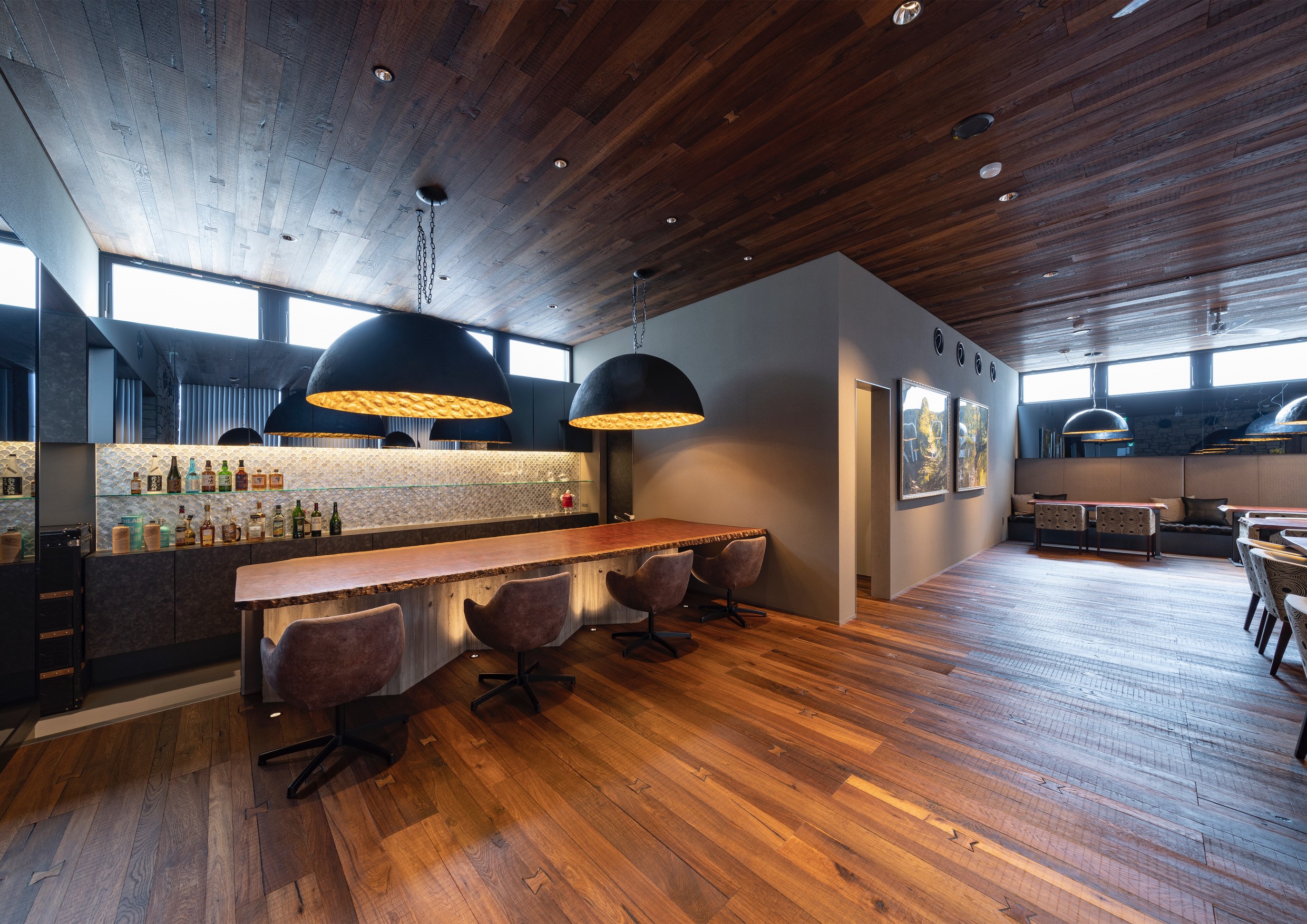 En el restaurante Katayama Grill de Japón, el parquet Millésime Margaux ha sido instalado tanto en el suelo como en el techo, creando una atmósfera única y envolvente.