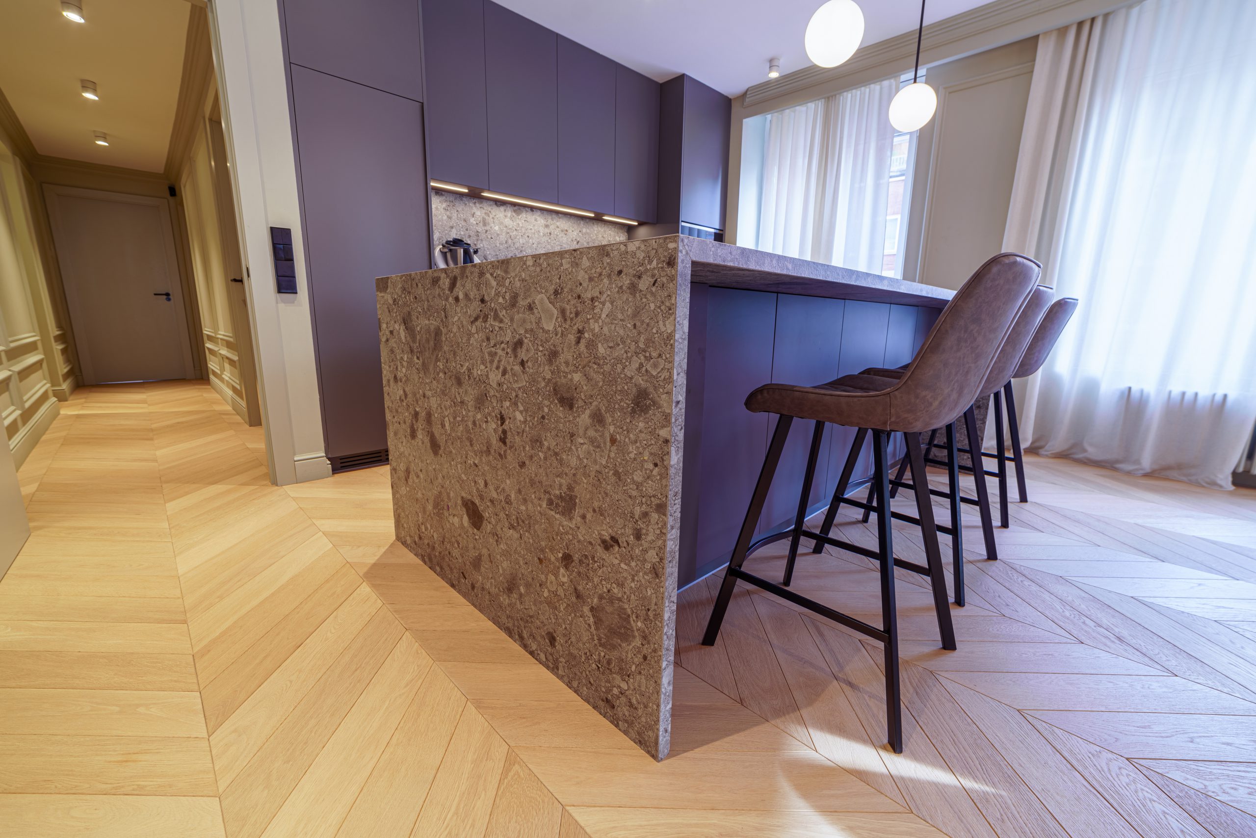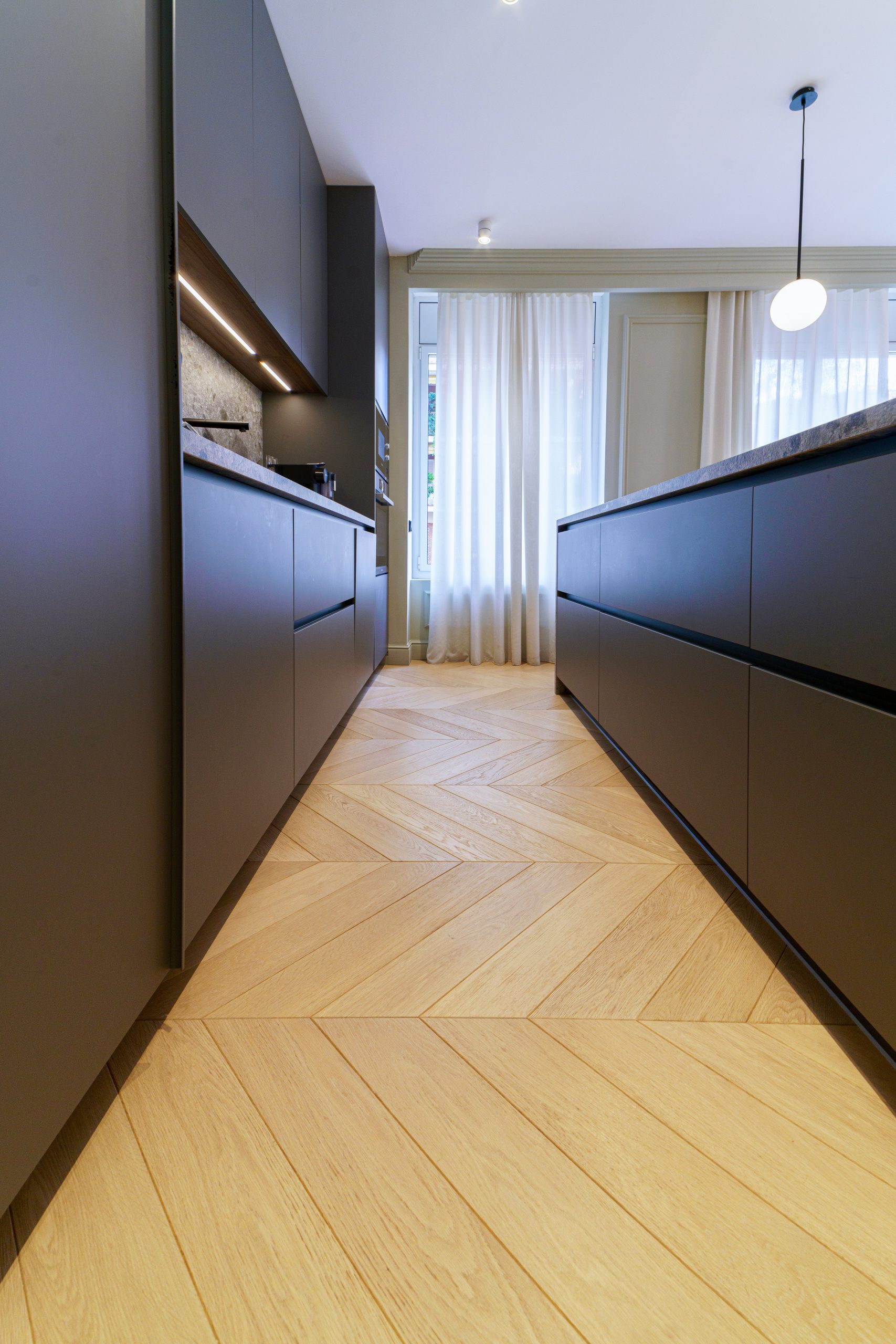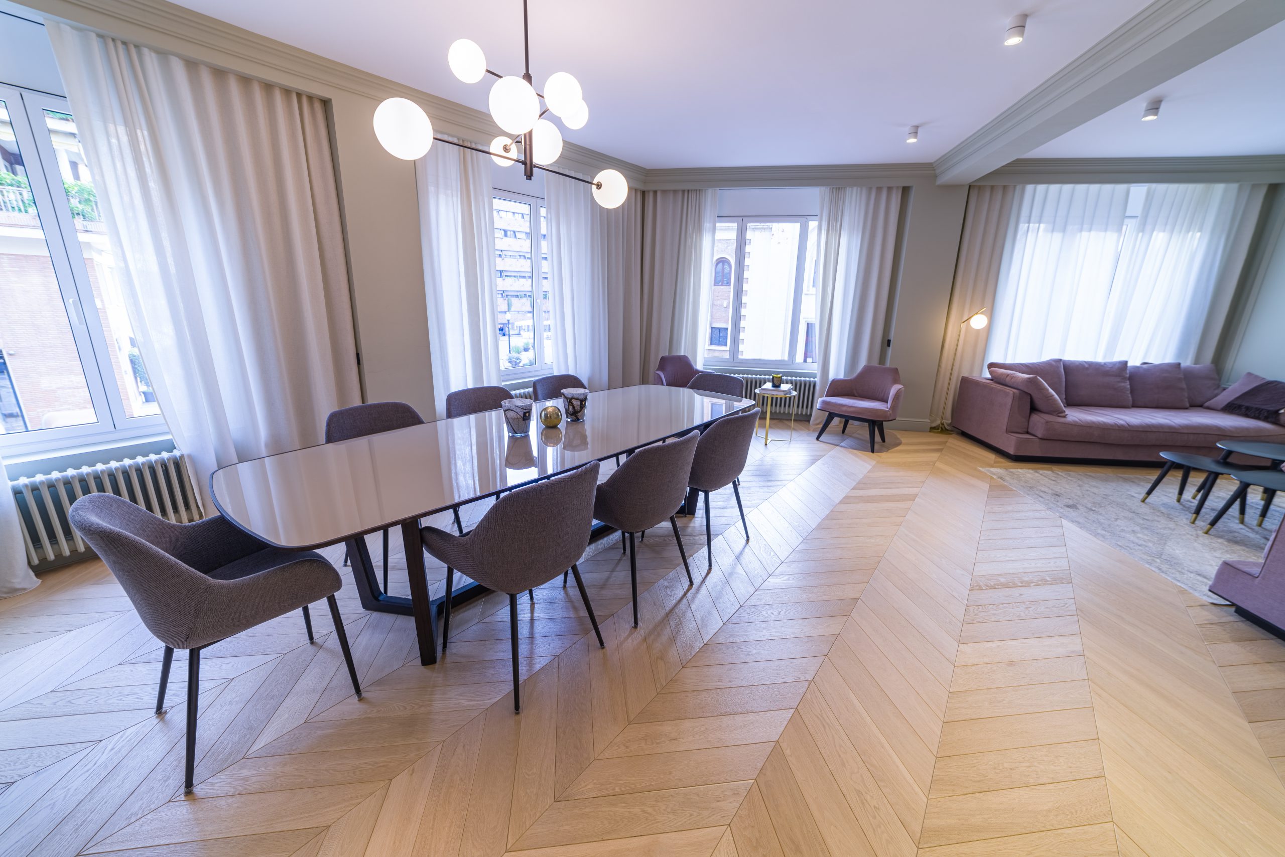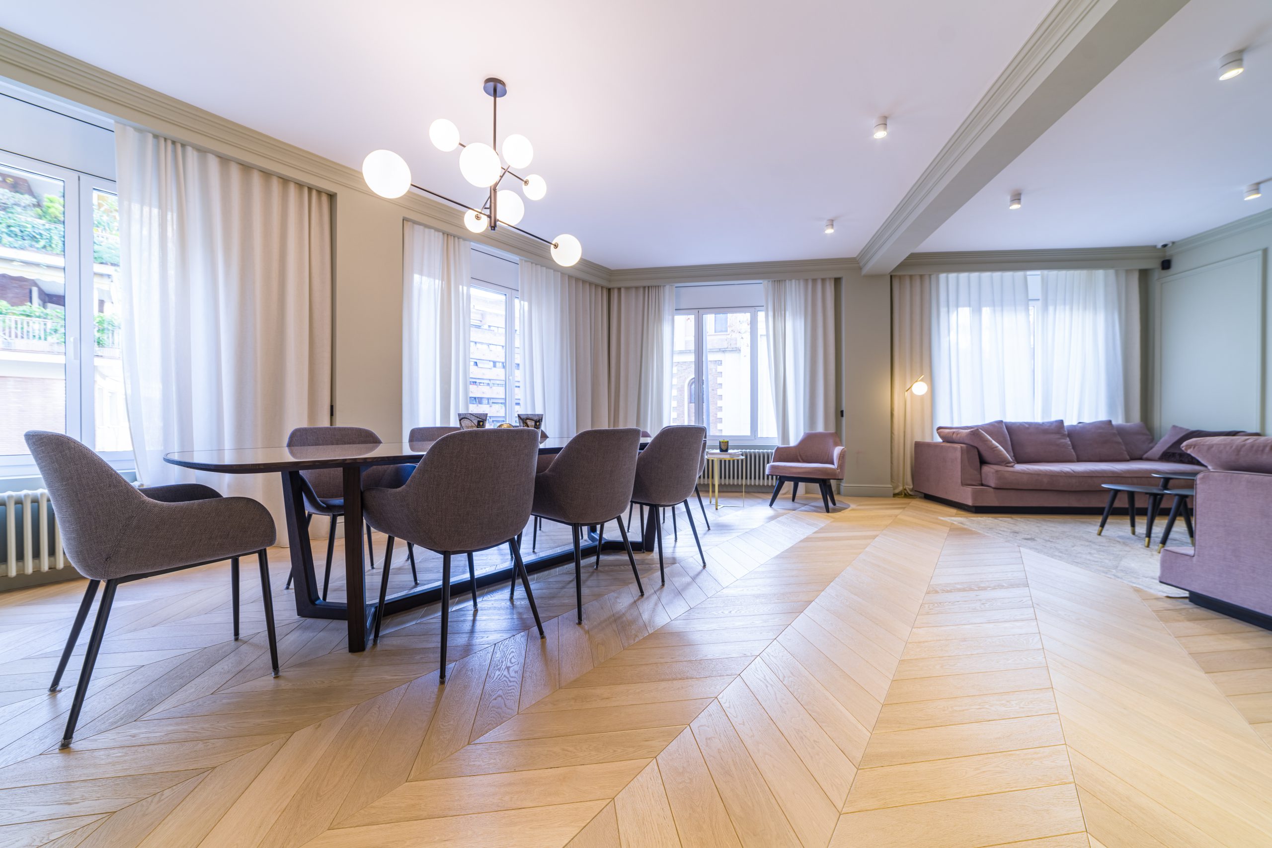 Ubicado en una de las zonas más exclusivas de Barcelona, este piso ha sido diseñado con un enfoque funcional que maximiza el espacio y la luminosidad. La instalación del parquet 1OAK Terral, con su elegante diseño en punta hungría, aporta una calidez única al ambiente, complementando la estética contemporánea del hogar.